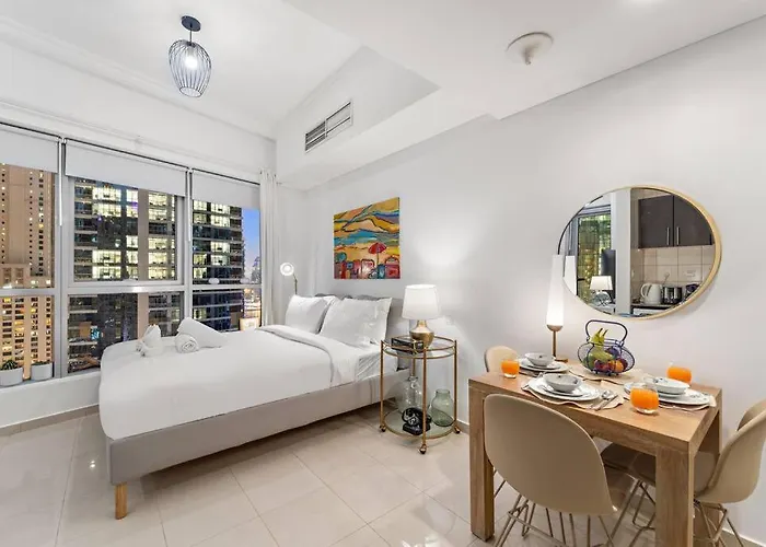 Die Ferienwohnung First Class Studio Cozy Urban Retreat Dubai liegt im Viertel Dubai Marina, in einer Entfernung von 31 Autominuten vom Flughafen Dubai Creek SPB. Diese 1-Zimmer-Apartments bietet moderne Annehmlichkeiten wie WLAN und kostenlose Privatparkplätze für Autoreisende.